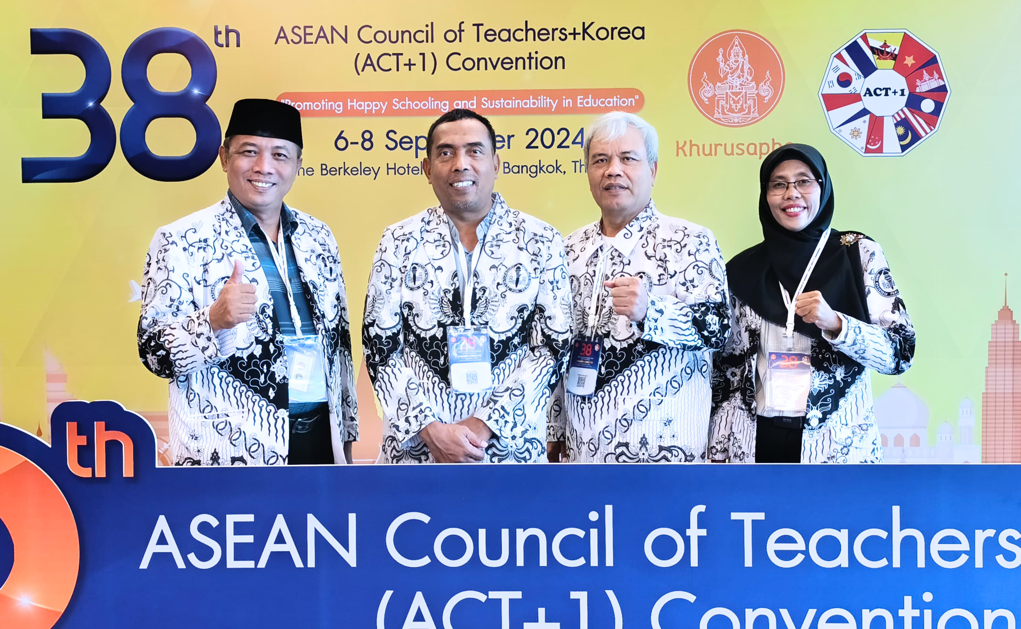 [Kamis, 5 September 2024] Delegasi PGRI Kota Semarang tiba di Bandara Don Mueang, Bangkok, Thailand, untuk mengikuti "38th ASEAN Council of Teachers+Korea (ACT+1) Convention." Konvensi yang mengangkat tema "Promoting Happy Schooling and Sustainability in Education" ini akan berlangsung dari tanggal 6 hingga 8 September 2024 di The Berkeley Hotel, Pratunam, Bangkok.
