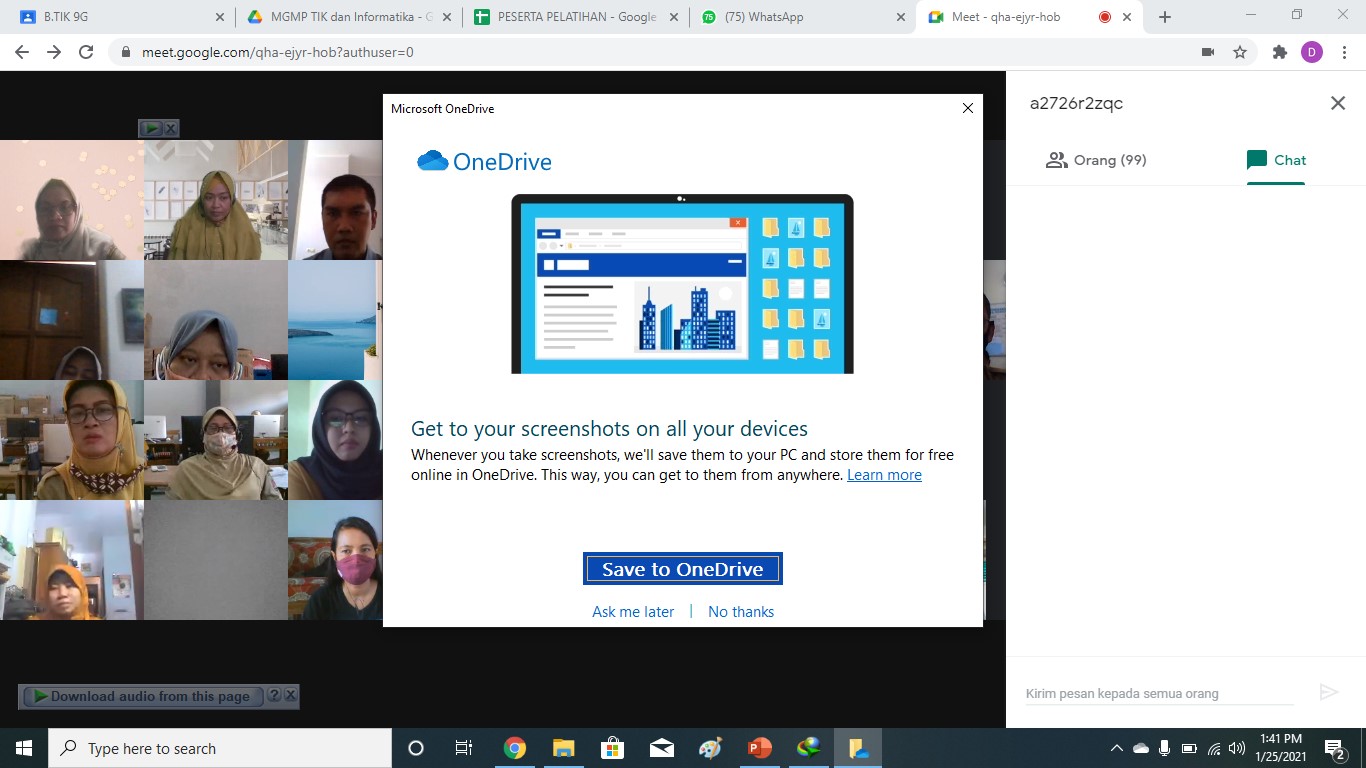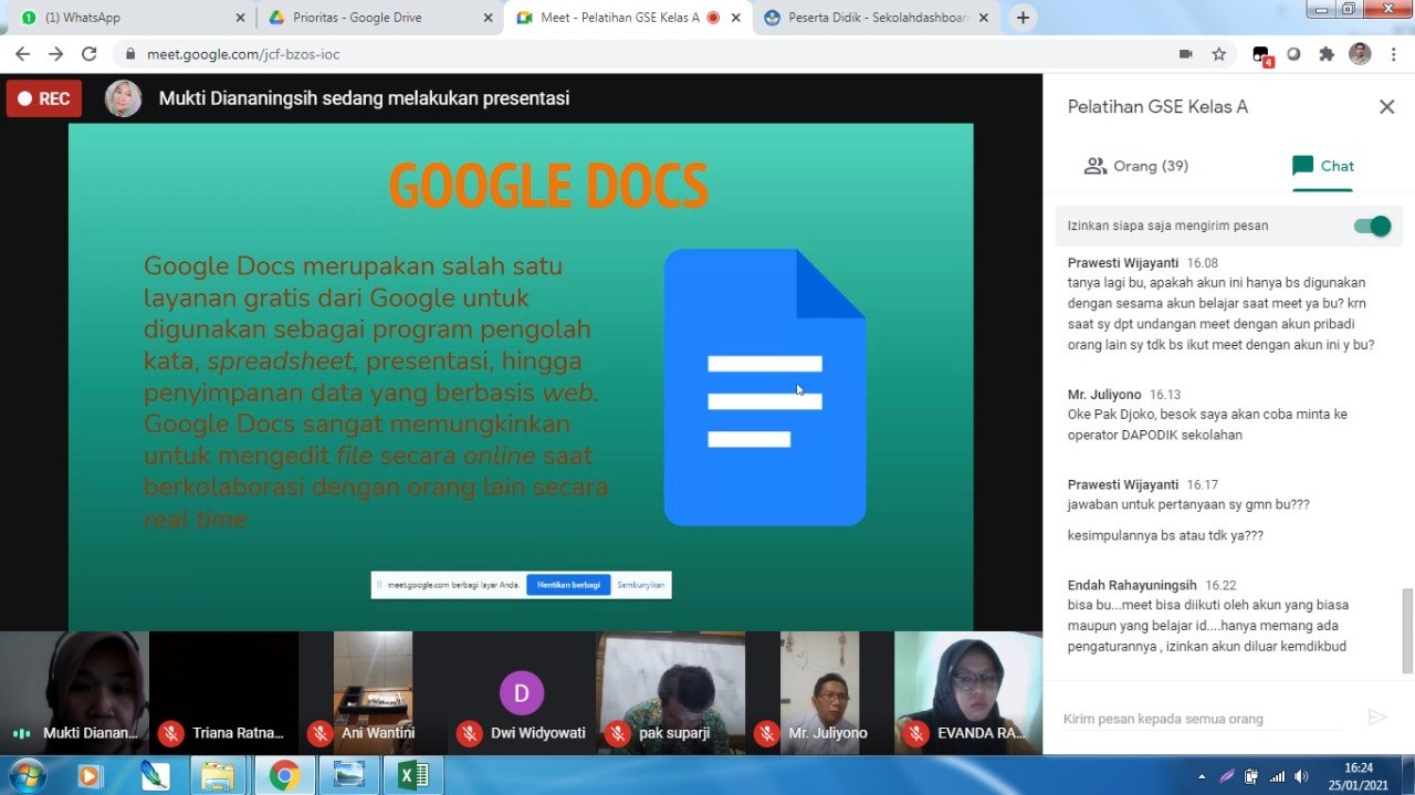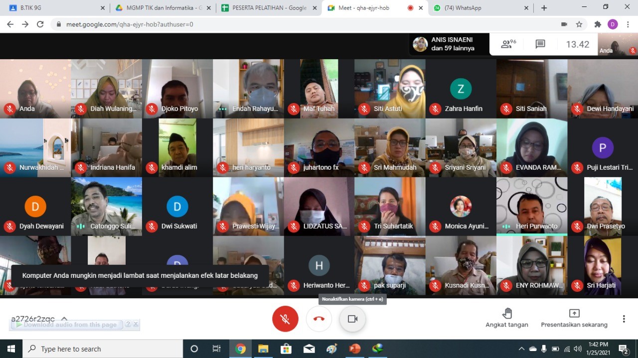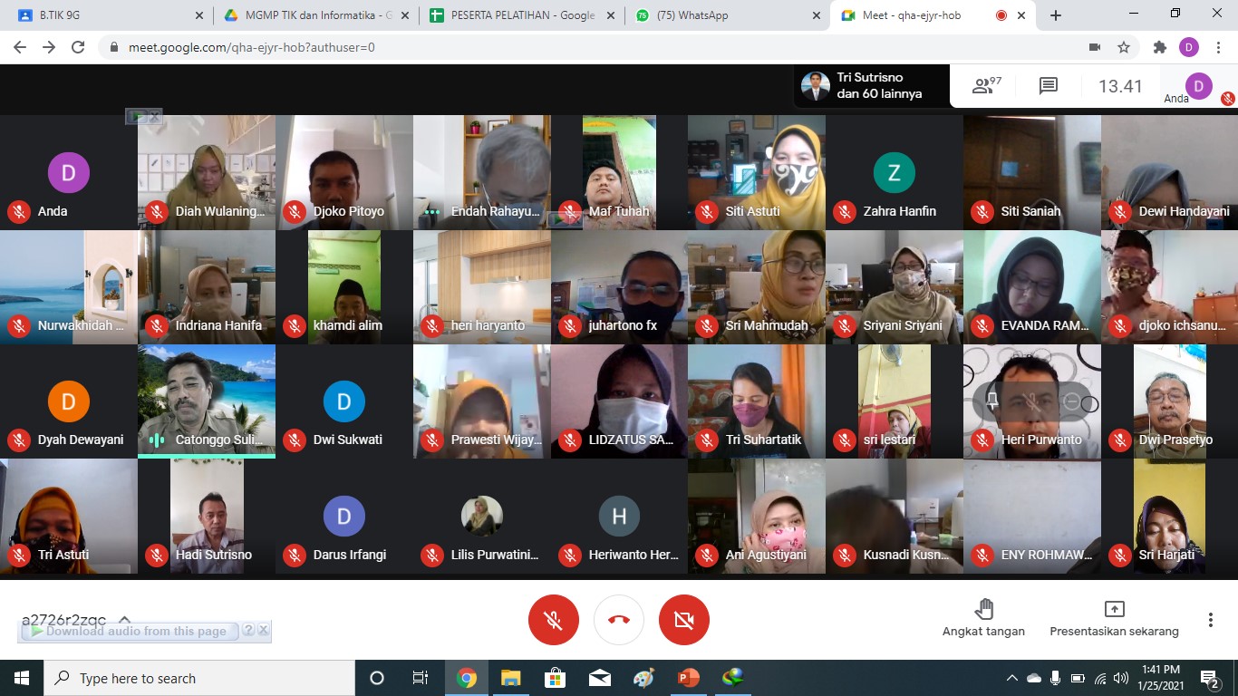 [Senin-Kamis, 25-28 Januari 2021] Diikuti oleh 126 guru guru SD dan SMP Kota Semarang yang dilaksanakan selama 4 hari dari tanggal 25 s/d 28 Januari 2021 dan dilakukan secara Daring menggunakan Google Meet.
