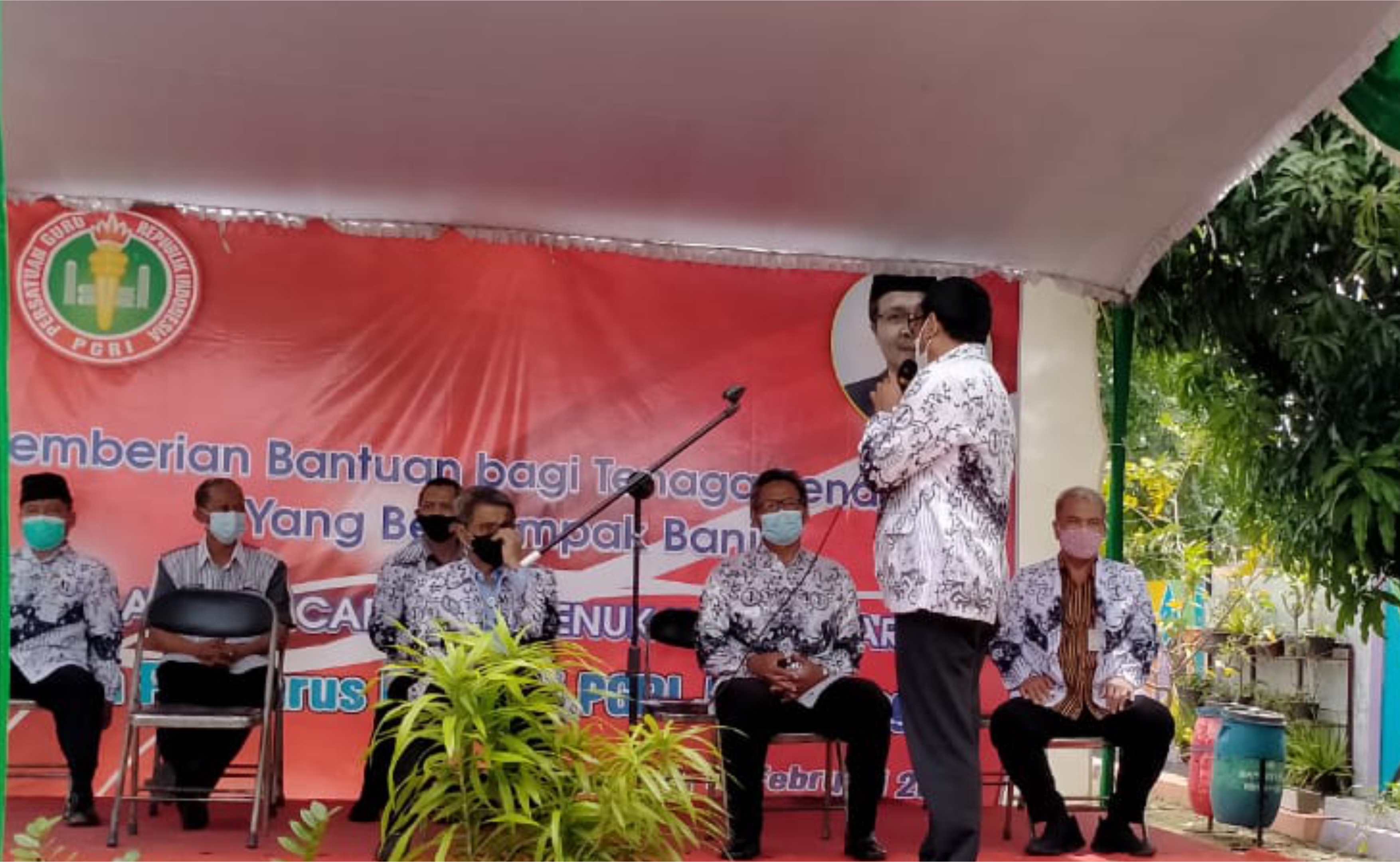 [Selasa, 16 Februari 2021] PGRI Provinsi Jawa Tengah sangat peduli sekali terhadap guru dan tenaga kependidikan yang terkena musibah banjir awal bulan Februari 2021. Hadir langsung menyerahkan Ketua Pengurus PGRI Provinsi Jawa Tengah Bapak Dr. H. Muhdi, S.H, M.Hum beserta pengurus PGRI Provinsi Jawa Tengah. Kegiatan dipusatkan di Kecamatan Genuk. Hadir dalam mendampingi kegiatan tersebut Ketua PGRI Kota Semarang Bapak Dr. H. Nur Khoiri, M.T., M.Pd.. dalam sambutannya Ketua PGRI Kota Semarang mengucapkan terima kasih kepada Ketua Pengurus PGRI Provinsi yang berempati hadir di tengah-tengah para guru dan tenaga kependidikan. Dalam sambutannya Ketua Pengurus PGRI Provinsi Jawa Tengah bahwa PGRI akan tetap terus berjuang dan memberikan pendampingan apapun kepada para guru dan tenaga kependidikan termasuk kepedulian kepada para korban banjir. Penyerahan secara simbolis diberikan perwakilan dari unsur SD, SMP, dan SMA dan bersatatus non-ASN.