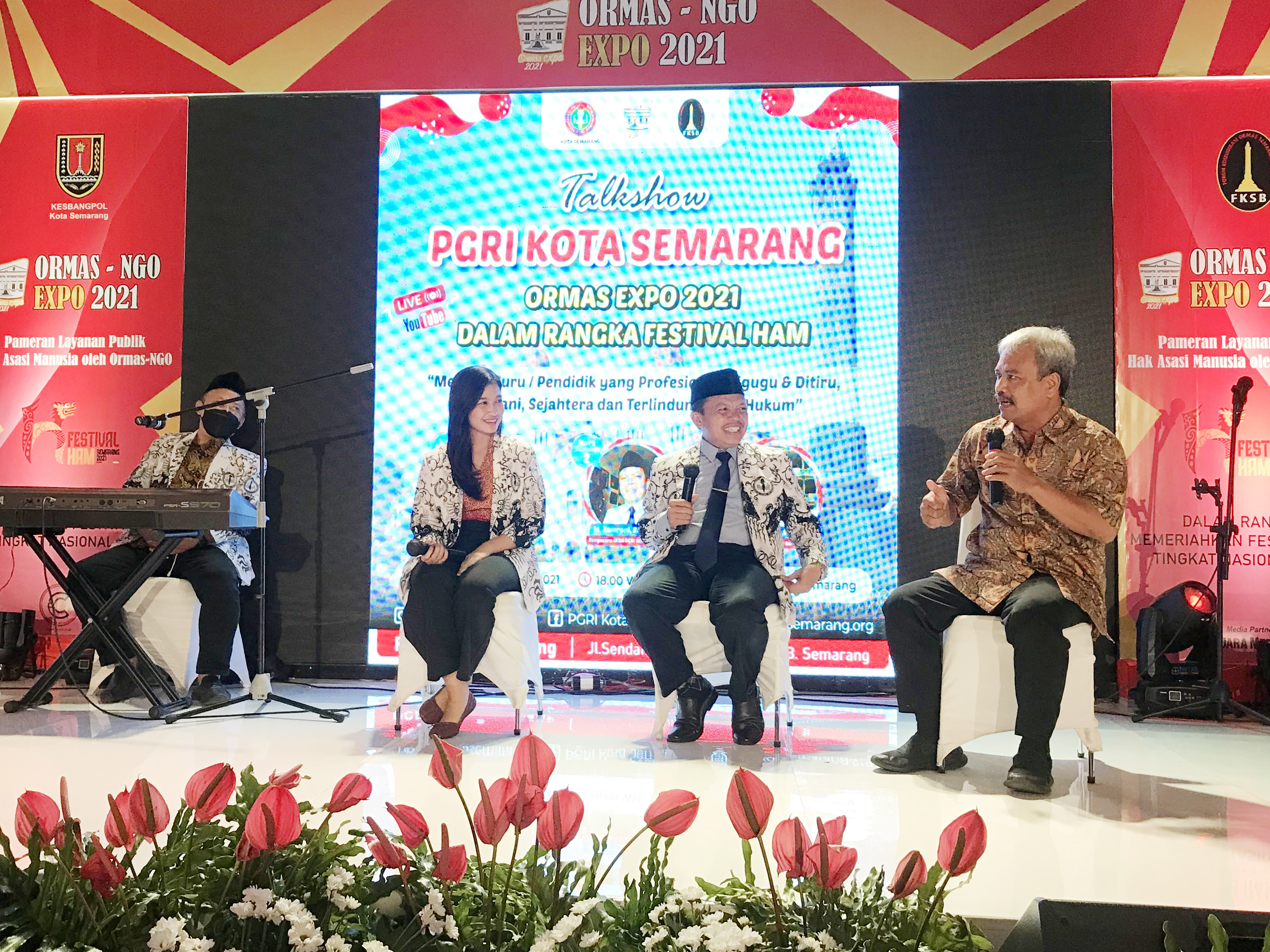 [Kamis, 18 November 2021] Talkshow asyik dari PGRI Kota Semarang di Paragon Mall dengan tema "Menjadi Guru / Pendidik yang Profesional, Digugu & Ditiru, Disegani, Sejahtera dan Terlindungi oleh Hukum" dalam acara Festival HAM Expo Ormas-Ngo Kota Semarang.